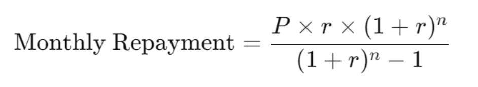 n = total number of monthly repayments (loan term in years × 12)