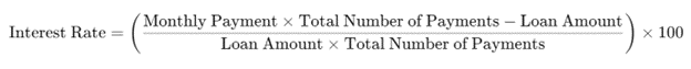 To calculate the interest rate for your home loan, you can use the following formula if you know your monthly repayments, loan amount, and loan term:
